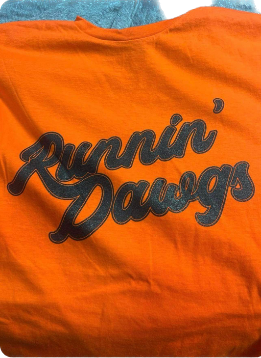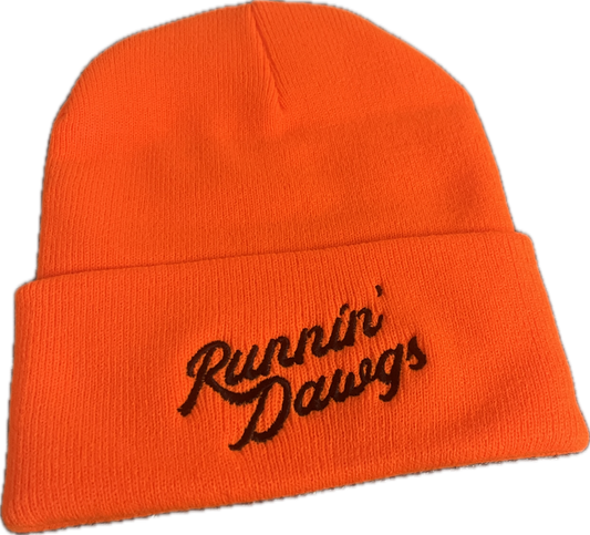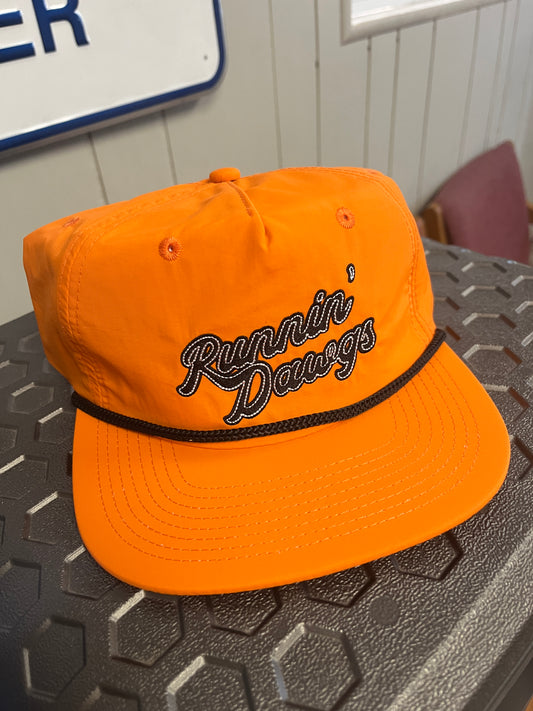 Runnin' Dawgs Hat with Solld Back, Flat Bill, Orange with Rope